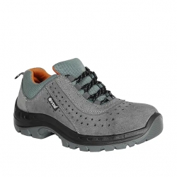 CARACTERÍSTICAS:- Sandália de segurança S1 SRC em couro camurça e prático fecho com tira de velcro. Os orifícios para os dedos e as aberturas laterais permitem um excelente nível de ventilação do pé, mesmo nos dias mais quentes. Forro em tecido respirável resistente à abrasão e palmilha antiestática..